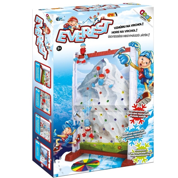 Stolová hra Everest je zábavná a vzrušujúca aktivita pre celú rodinu, ktorá simuluje výstup na najvyššie hory sveta. Úlohou hráčov je dostať svojich dvoch horolezcov na vrchol Everestu skôr ako ich súperi. Hra je navrhnutá ako vertikálna lezecká výzva, v ktorej sa horolezci pohybujú po farebných chytoch, ktoré sú umiestnené na plastovom paneli znázorňujúcom zasneženú horu. Každý plastový horolezec má pohyblivé končatiny, ktoré mu umožňujú uchopiť farebné chyty a postupne liezť.