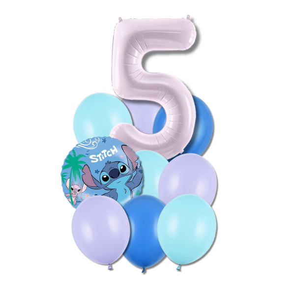 Balóniková kytica - Stitch a Angel s číslom "5", 10 ks