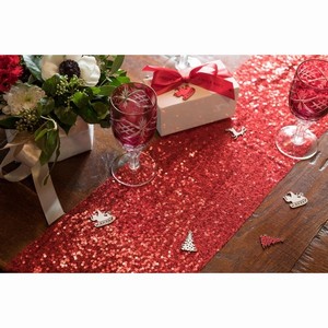 Šerpa na stred stola je z polyesterovej tkaniny, potiahnutá lesklými flitrami.