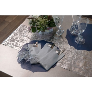 Šerpa na stôl v metalicky striebornej farbe je vhodná na mnoho príležitostí.