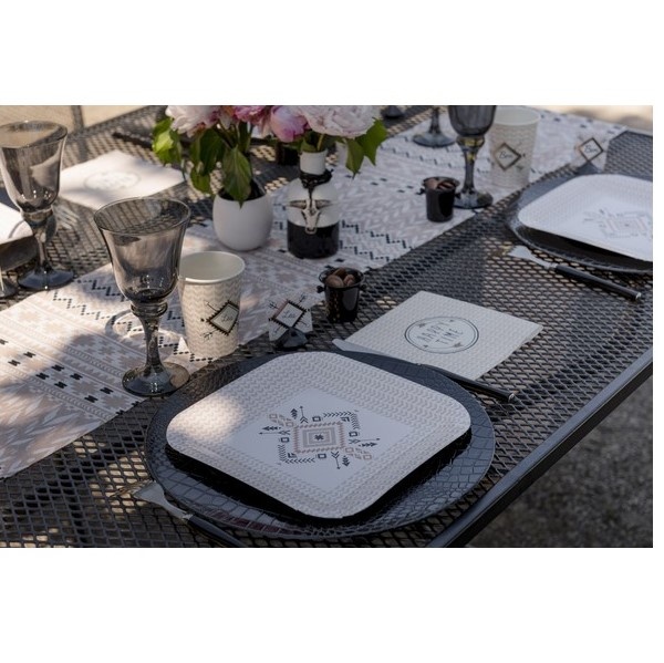 Stolová šerpa Etno je farebný stolný stredový obrus v etnickom štýle s geometrickými tvarmi.