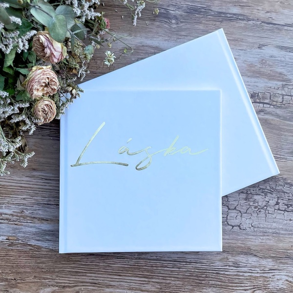 po obrade a počas svadobnej hostiny. Svadobná kniha je doplnená lesklým zlatým nápisom.