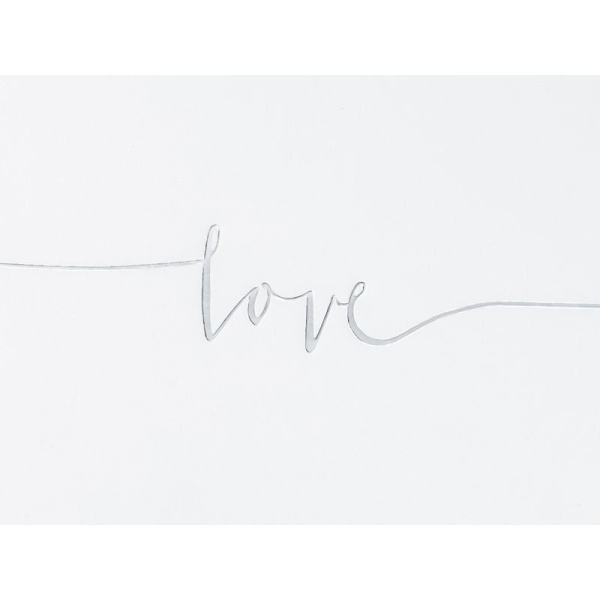 Biela svadobná kniha s pevnou väzbou so strieborným nápisom Love.