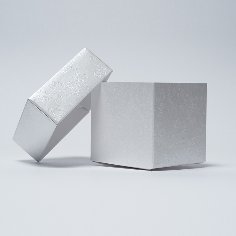Krabičky s embosovaným dekorom motýlikov budú vyzerať nádherne na svadobnej tabuli. Použite ich na drobný darček pre svadobčanov, naplňte ich mini koláčikmi, zdobeným cupcakom, svadobnými mandľami alebo inou pozornosťou.