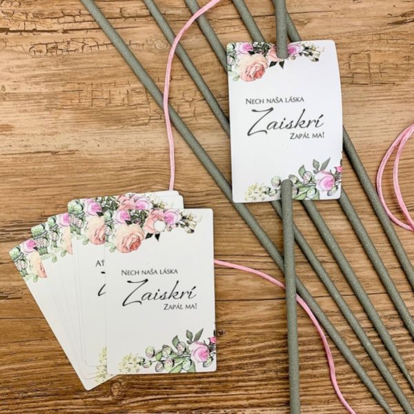 je to naplánované, poslúži práve táto tzv. kartička na navlečenie na svadobnej prskavky s kvetami ruží