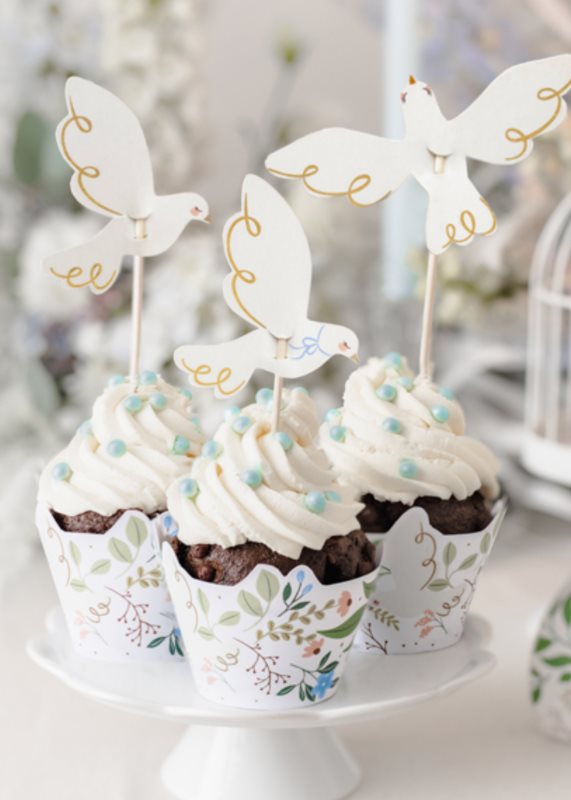 Vrchnáky na koláčiky - holubica, sada obsahuje 3 vzory po 2, mix farieb, výška približne 14,5 cm. Výrobok na samostatné zostavenie. (1 ks / 6 ks)