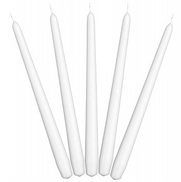 Dekoratívna štíhla sviečka v bielej farbe. Skvelá dekorácia nielen na svadobný stôl alebo sviatočnú tabuľu.