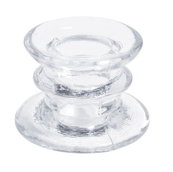 Elegantný transparentný sklenený svietnik na kónickú sviečku.