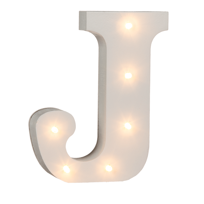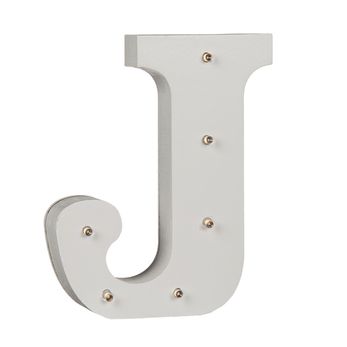 Svietiace písmeno J s LED žiarovkami pre štýlové osvetlenie a originálnu dekoráciu.