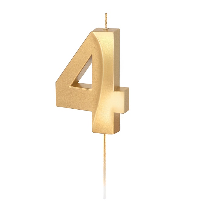 Narodeninová sviečka na torte číslo 4 Výška sviečky je 7 cm Farba: kovovo zlatá |