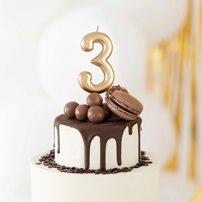 Zlatá sviečka s číslom 3 je elegantný a štýlový doplnok, ktorý urobí každú slávnostnú príležitosť ešte nezabudnuteľnejšou. Či už ide o narodeniny, výročie alebo inú výnimočnú udalosť, táto sviečka bude zaručene stredobodom pozornosti.