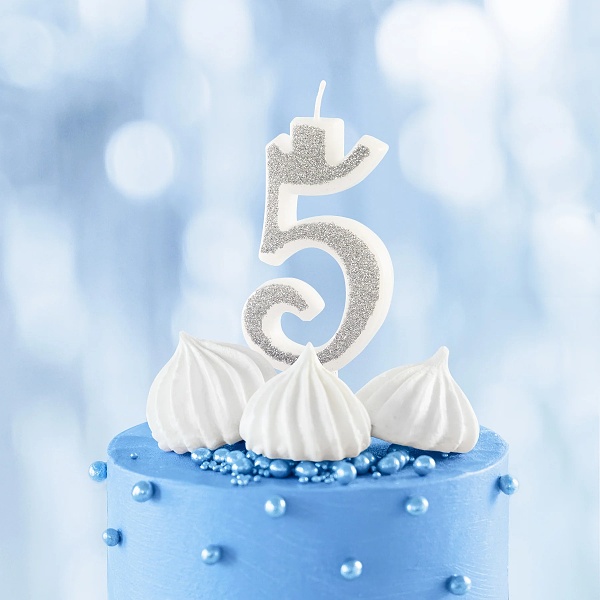 Tortová sviečka číslo 5 so striebornými trblietkami