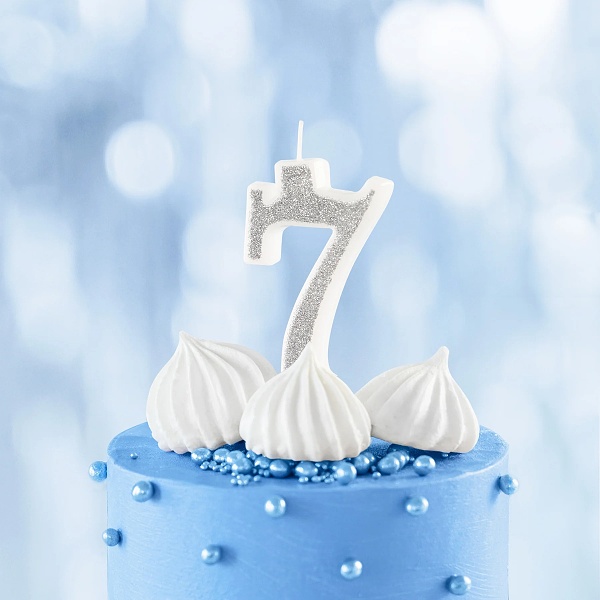 Tortová sviečka číslo 7 so striebornými trblietkami
