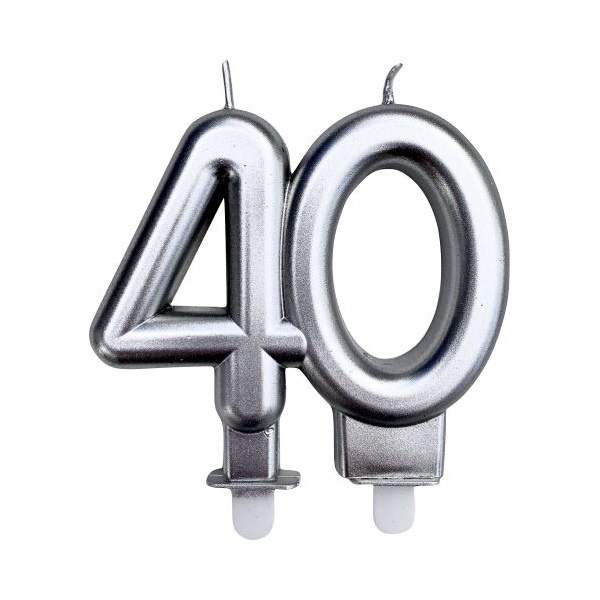 Metalicky strieborná sviečka na tortu v tvare číslice 40 vám vytvorí krásnu dekoráciu narodeninovej torty.