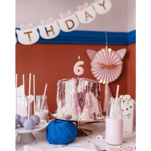 MojaParty Dekorácie a stolovanie Cukrarske potreby , ozdoby na torty a pečenie Sviečky na tortu Sviečka narodeninová číslo 6, svetlo ružová 5,5 cm