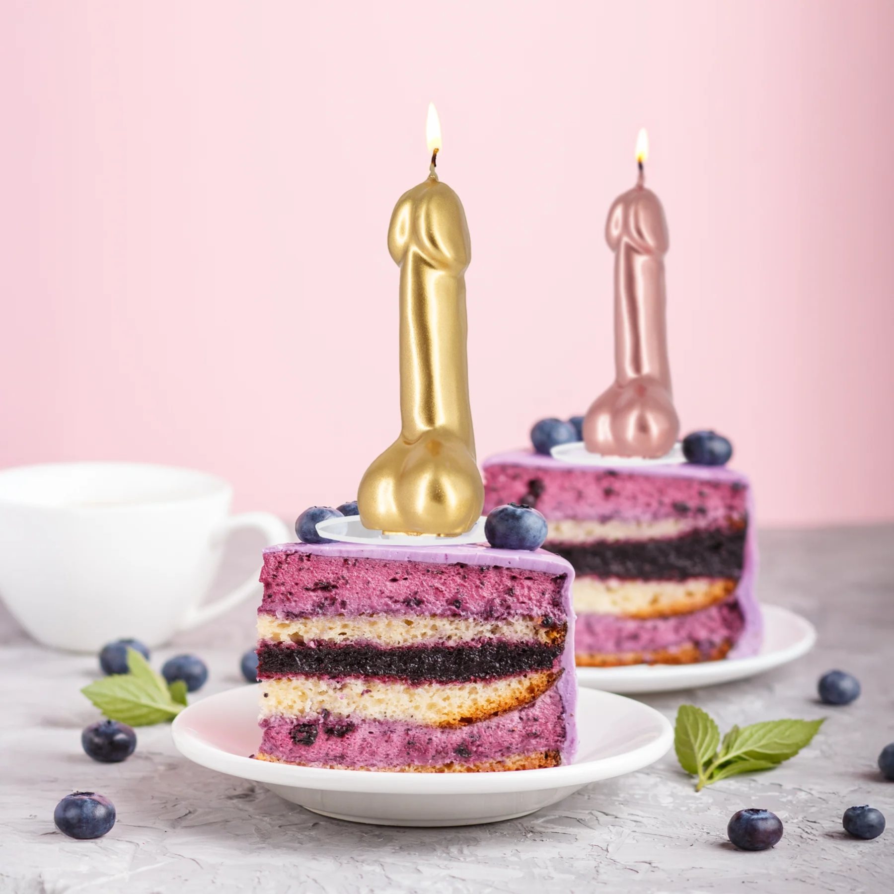 Doprajte svojmu priateľovi nezabudnuteľnú narodeninovú oslavu s touto originálnou sviečkou na tortu v tvare penisu v elegantnej zlatej farbe.