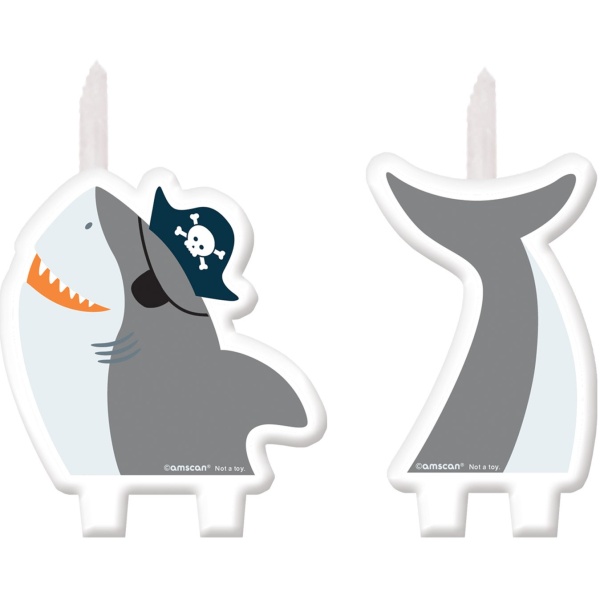 A práve tieto krásne dve sviečky v tvare žraločieho tela sú originálnou dekoráciou torty na tematickej oslave Ahoy Birthday.