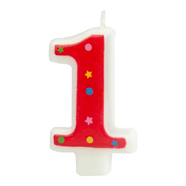 Narodeninová sviečka na tortu v tvare čísla 1 s červeným lemovaním je nevyhnutným doplnkom najmä na oslavu 1. narodenín dievčatka.