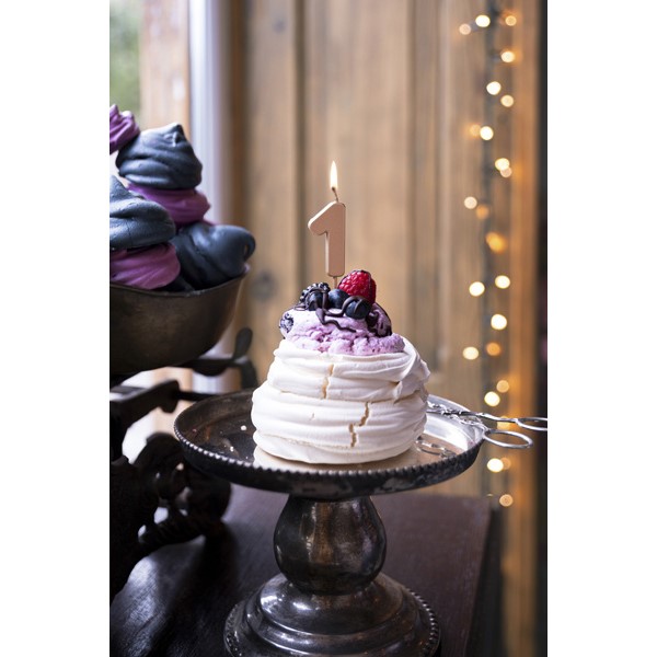 Táto narodeninová sviečka s jednou číslicou, vyrobená v elegantnom ružovom zlate, dodá každej oslave špeciálnu iskru.