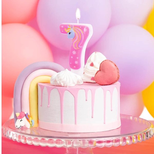Táto sviečka je ideálnou voľbou na oslavu narodenín s motívom jednorožca. Jedinečný dizajn sviečky dodá každej narodeninovej torte zábavný a magický nádych.