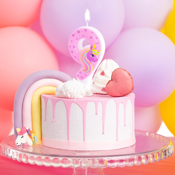 Táto sviečka je ideálnou voľbou na oslavu narodenín s motívom jednorožca. Jedinečný dizajn sviečky dodá každej narodeninovej torte zábavný a magický nádych.