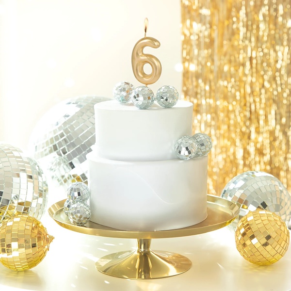 Krásna zlatá lesklá sviečka v tvare čísla 6 je dokonalým doplnkom na každú oslavu.