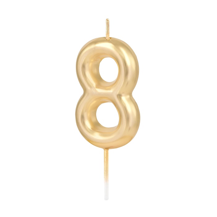 Krásna zlatá lesklá sviečka v tvare čísla 8 je dokonalým doplnkom na každú oslavu.
