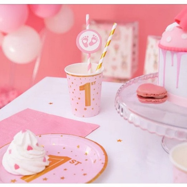 Sada jednorazových papierových pohárov na 1. narodeniny dievčatka