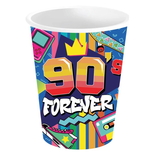 Papierové tégliky 90. roky sú perfektným doplnkom vašej retro párty.