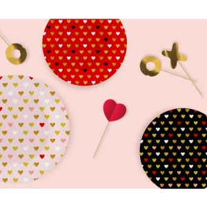 Červené papierové taniere so srdiečkami z kolekcie XoXo.