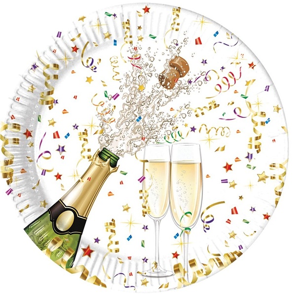 Papierové taniere s pútavou potlačou šampanského sú vhodné na teplú aj studenú kuchyňu.