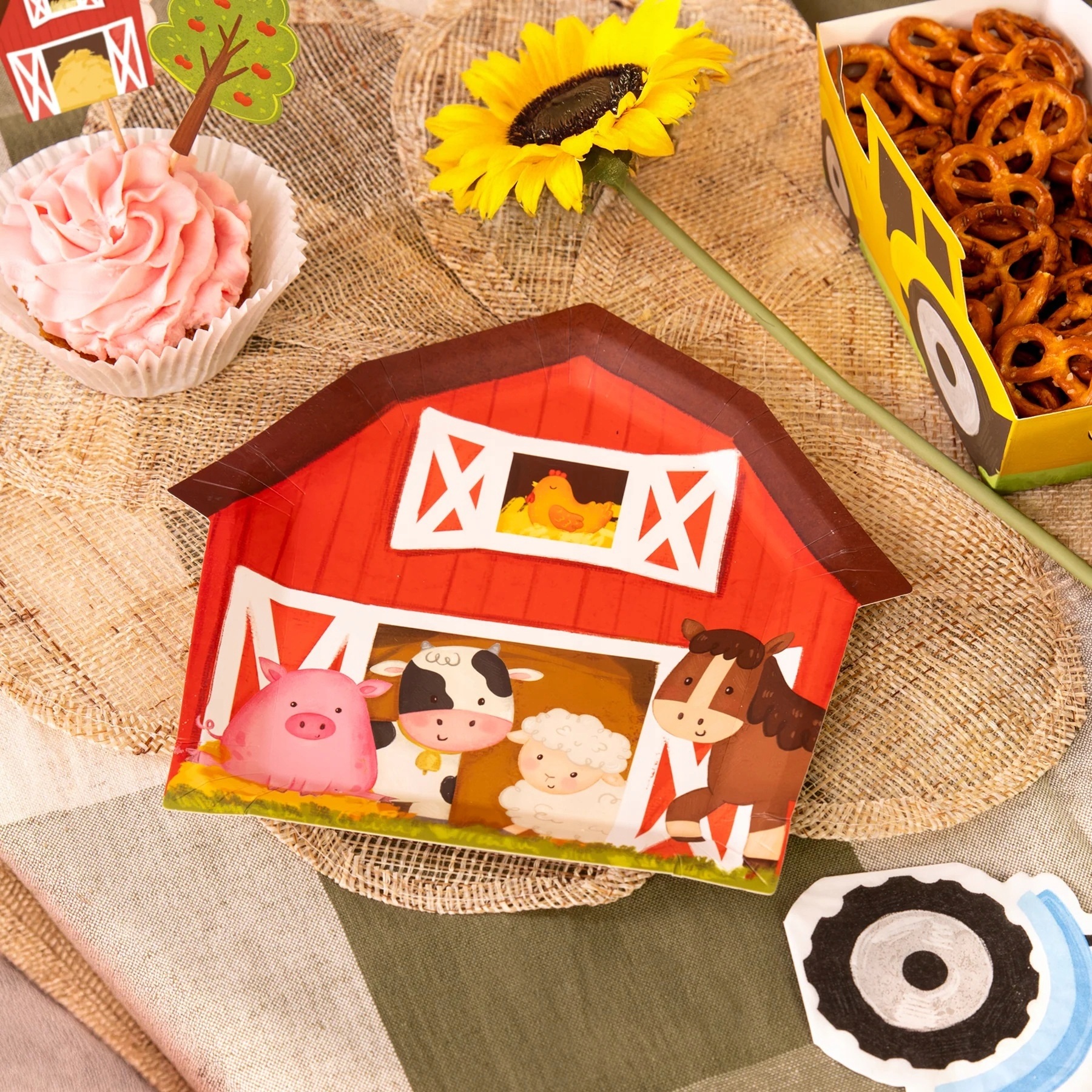 Jednorazové papierové taniere Farma sú nevyhnutným a veselým doplnkom k oslavám stolovania s tematikou farmy.