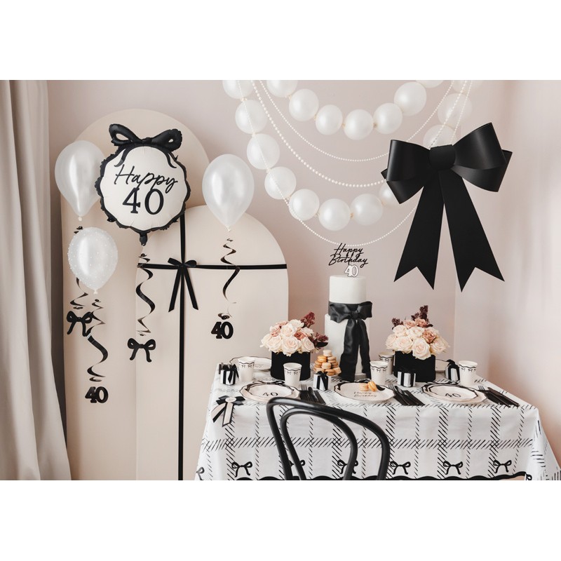 Praktické jednorazové taniere sú krémovej farby s elegantnými čiernymi detailmi a čiernym nápisom Happy Birthday.