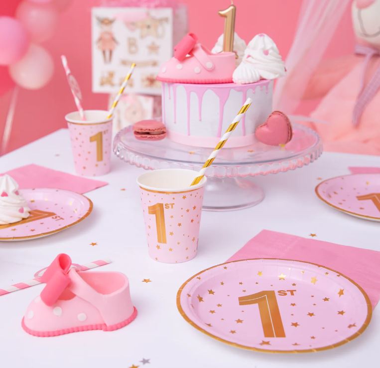 Sada jednorazových papierových tanierov pre 1. narodeniny dievčatka