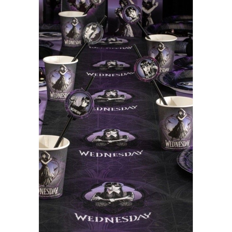 Dodajte svojej tematickej párty špeciálny nádych s týmito dezertnými tanierikmi "Wednesday Addams"! Tieto taniere neobsahujú plasty, sú ideálne na koláče, občerstvenie alebo malé predjedlá a prinášajú Wednesdayin osobitý štýl priamo na váš stôl.
