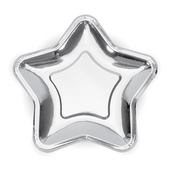 Tanieriky papierové Hviezdičky strieborné 6ks