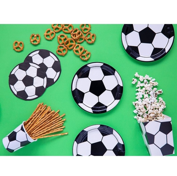 Papierové taniere sú dôležitý doplnok stolovania na tématickú futbalovú párty. Každý malý i veľký futbalista sa rád občerství z týchto štýlových tanierov v podobe futbalovej lopty.