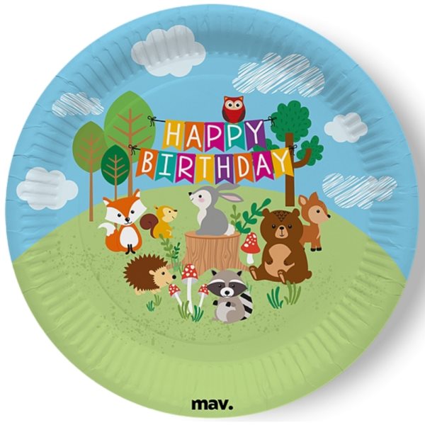 Veľké papierové taniere na oslavu v tematike lesných zvieratiek. Oslavujte s tými, koho máte radi, s vašimi kamarátmi z lesa.