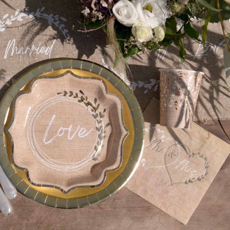 Zachovajte preto tento prírodný štýl pri vytváraní svadobných dekorácií tým, že pridáte doplnky z dreva, vrecoviny alebo kraftu.