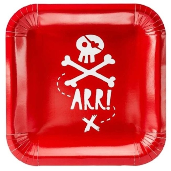 Žiadna poriadna oslava či narodeniny v "Pirátskom štýle" sa nezaobíde bez týchto praktických papierových tanierov v sýto červenej farbe s bielou lebkou.