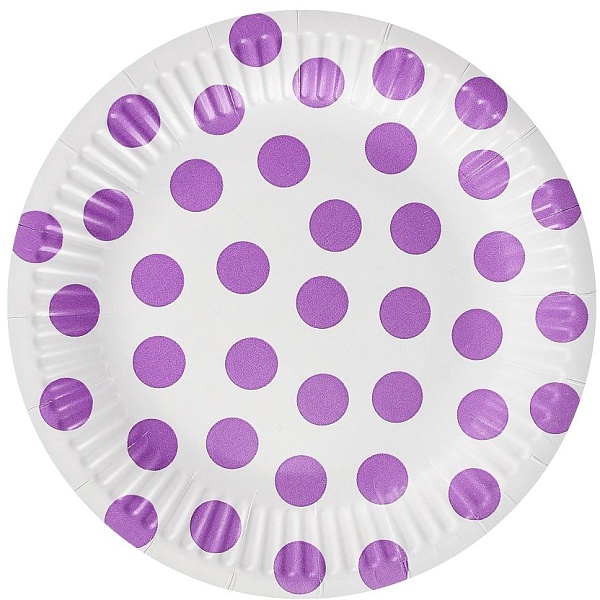 Jednorazové papierové tanieriky s fialovými bodkami vám oživia farebné stolovanie.