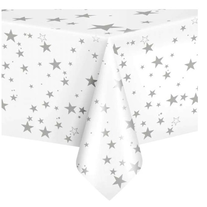 | Plastový biely obrus so striebornými hviezdami Tento praktický obrus bude krásnou dekoráciou na všetky druhy osláv a … |