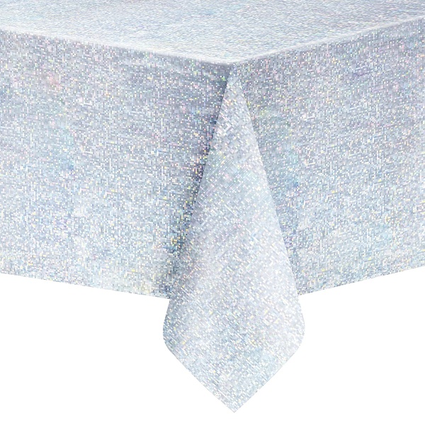 Párty obrus z trblietavého holografického plastu sa môže pochváliť inou farbou na každej strane.