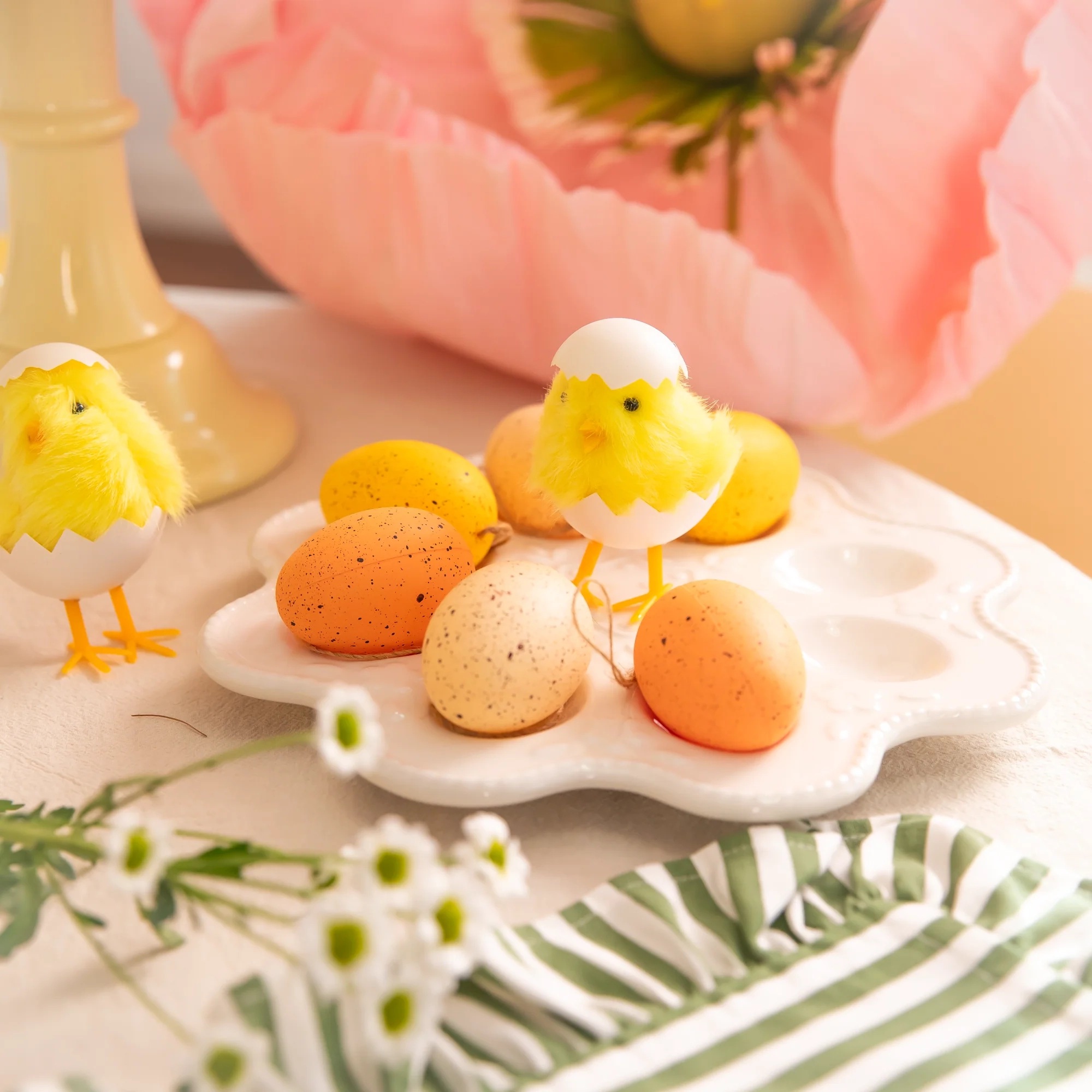 Vďaka svojej kompaktnej veľkosti sa dá ľahko umiestniť do menších aranžmánov, napríklad na veľkonočný veniec, do prúteného košíka alebo so sviečkami na sviatočne prestretý stôl.