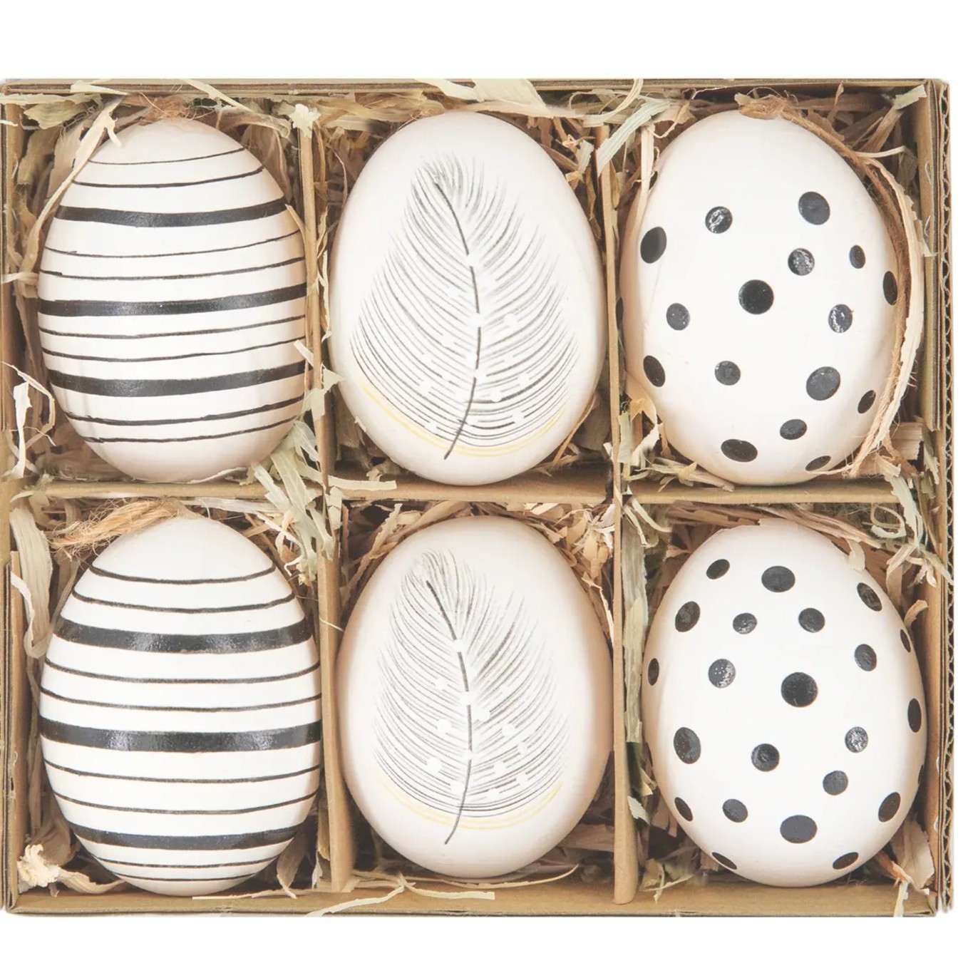 Vytvorte si doma jedinečnú jarnú atmosféru s elegantnými prírodnými vyfúknutými vajíčkami v bielej a čiernej farbe.