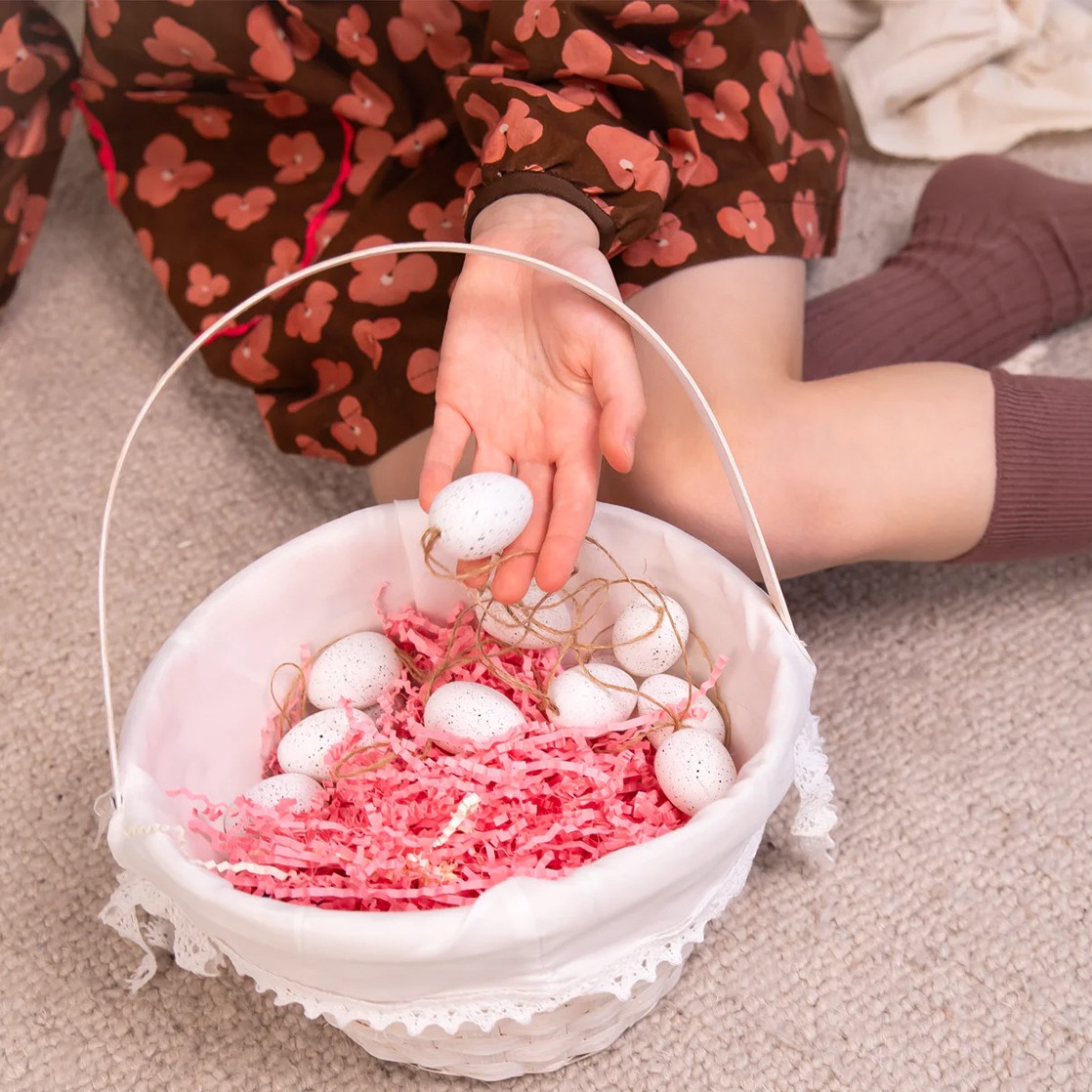 Biely košík na veľkonočné vajíčka je dokonalým doplnkom pre všetky veľkonočné oslavy a tradície.