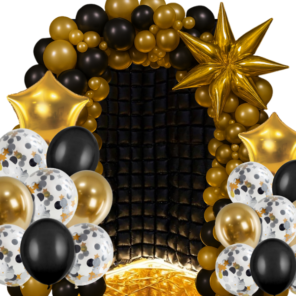 Vytvorte si luxusné dekorácie v štýle Veľkého Gatsbyho! Táto bohatá sada balónov v elegantnej čierno-zlatej kombinácii dodá každej oslave nádych sofistikovanosti, lesku a veľkolepej atmosféry. Perfektne sa hodí na narodeniny, tematické večierky, firemné akcie a Silvester.