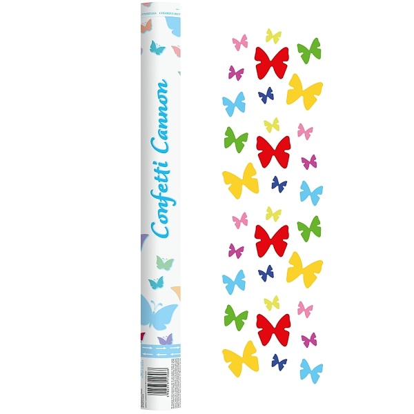 Vystreľte na party hustý dážď farebných motýlikov! Vystreľovacie konfety Vašu party oživí a Vašich hostí privedú do extázy. Tuba s konfetami je 60cm dlhá.