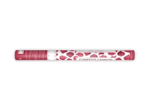 Konfety vystreľujúce tmavočervené okvetné lístky umelých ruží, dĺžka 60 centimetrov.