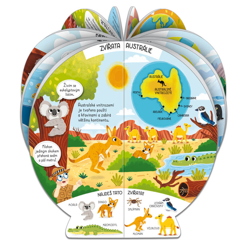 V tejto rozkladacej knižke sa vedomosti a zábava spájajú do jedinečného celku. Táto kniha v tvare rozkladacieho glóbusu deti zavedie na cestu okolo sveta a vesmíru bez toho, aby museli opustiť pohodlie ich izby.